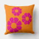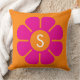 Groovy Pink Daisy with Custom Orange Monogram Cushion