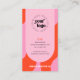 Trendy business card design featuring retro fonts, abstract pattern background in pink and red and space for your custom QR code. Create groovy scannable QR code business cards for your design, photography, beauty spa or any other business using this modern calling card template. You can add any link to the QR code to promote your social media accounts, website or a special offer. All colours are editable when editing using the zazzle design tool.