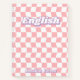 Another girly school composition book by JessicaAmber. This fun spiral bound notebook features a wavy checkerboard design in pastel pink and white, giving a groovy and youthful vibe. Near the top is customizable text for your school subject, in white with a purple stroke. Default is 'English'. At the bottom, you can add the student name. A great back to school supply for your teen or young adult daughter. ••• For more Y2K stationery, visit my store Zazzle.com/JessicaAmberArtist ••• For custom orders, message me on Zazzle