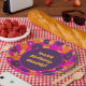 Give your party the flower power treatment with these custom paper plates. They're ready to be personalised with your custom message, and feature an all over pattern inspired by the hippie era with daisy style flowers in shades of purple, orange, yellow and bright pink.