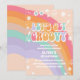Celebrate your little ones milestone with this retro rainbow 1st birthday invitation! Featuring a vibrant 1960s-inspired design with peace signs, flowers, stars, and lightning bolts, this groovy card sets the perfect tone for a fun and colourful party. Bold, whimsical fonts highlight your childs special day while the playful layout makes it easy to share event details. Ideal for hippie, boho, or retro-themed celebrations, this invitation brings peace, love, and joy to your guests.