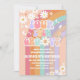 Celebrate your little ones special day with this retro-inspired groovy birthday invitation! Featuring a vibrant rainbow background, playful daisies, stars, hearts, butterflies, and bold retro fonts, this design radiates peace, love, and fun. Perfect for a 4th birthday party, it sets the tone for a cheerful, nostalgic celebration that guests will adore. Customize with your childs name, party details, and RSVP information to create a one-of-a-kind invitation thats both stylish and memorable.