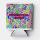 Standard foam can cooler decorated with my own hand-drawn Groovy Rainbow Splatter design, and official Strawberry Inc. Designs logo!