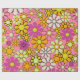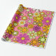 Groovy Retro 60s 70s Hippie Pink Floral Pattern Wrapping Paper