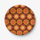 Groovy retro 70s boho hippie orange flower pattern paper plate