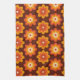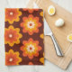 Groovy retro 70s boho hippie orange flower pattern tea towel