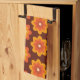 Groovy retro 70s boho hippie orange flower pattern tea towel