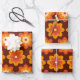 Groovy retro 70s boho hippie orange flower pattern wrapping paper sheet