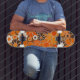 Groovy Retro 70s Floral Pattern Orange and Brown Skateboard