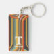 Add a retro touch to your daily routine! Personalise this custom keychain with your name and monogram. Featuring a stylish abstract line design in warm shades of gold, orange, teal, and brown.