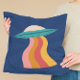 Groovy Retro Alien Spaceship Rainbow Cushion