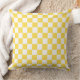 Groovy Retro Checkerboard Pattern Yellow and White Cushion