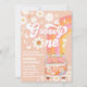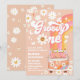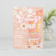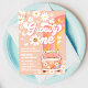 Celebrate your little ones special day with this retro-inspired birthday invitation featuring a peach background, white daisies, butterflies, hearts, and a rainbow in warm shades of orange, pink, and yellow. A flower-decorated van with a peace symbol adds a fun hippie vibe, perfect for a groovy first birthday party. This customizable invitation blends nostalgic 1960s style with modern charm, making it ideal for kids birthday celebrations, peace and love themes, or retro party décor. Personalize easily for your childs name, date, and details to create a unique keepsake.