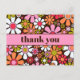 Groovy Retro Floral Colourful 60s 70s Flowers Pattern Pink and Brown. Cute and cheerful, with a vintage 1960s 1970s vibe. “Thank you” text can be personalised / customised. By Kierkegaard Design Studio.
