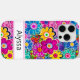 Make a retro statement with this groovy 70s inspired hippie flower power floral iphone 15 pro max phone case! It's modern and trendy with bright multi-coloured watercolor flowers. Make it uniquely yours with your name in a mod font in black. It will look fabulous on your phone!