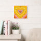 Retro heart burst design. Heart layers in orange, yellow, pink. Groovy retro heart gifts, home decor.