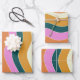 Groovy Retro Pink and Green Wavy Lines Wrapping Paper Sheets