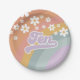 Groovy Retro Rainbow 10th birthday plates with daisies.