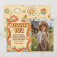 Groovy Retro Rainbow Birthday Party Photo Thank You Card