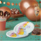 Groovy Retro roller skating birthday plates with 70's style fonts and colours, rainbow, daisies and happy faces.