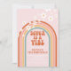 Retro inspired Seven is a vibe 7th birthday invitation with hippie style rainbow, daisies and boho fonts and colours.