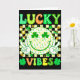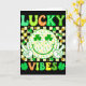 Groovy St Patricks Day Lucky Vibes Shamrock Women Card