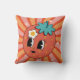 Dive into a berry good time with this groovy throw pillow! It features a charming strawberry character, complete with a happy little face and a leafy crown. The cheerful fruit takes centre stage against a swirling sunburst background in juicy shades of red, pink and orange. This far-out pillow is sure to add a touch of summer sweetness and retro charm to any room, bringing a smile and a taste of nostalgia to your space.