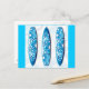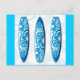 Show off your love for surfing. 3 groovy surfboards lined up waiting to hit the waves. These sky blue surfboards are decorated with a cool sixties retro flower theme. Evokes a sense of fun and whimsy.