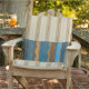 An earthy palette of deep blues and coppery browns in a groovy stripe print on an outdoor fabric throw pillow.