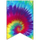 It'll be a groovy good time with this fun 1960s theme tie dye bunting. A rainbow tie dye swirl background sets off the white retro looking text on each flag that has its own editable letter. Available with matching items.