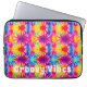 Cool laptop sleeve featuring a colourful retro tie dye background with customisable hippie "groovy vibes" text.