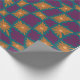 Groovy Wavy Trippy 60s Flower Checks Orange Pink Wrapping Paper
