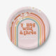 Groovy Young Wild Three daisy rainbow 3rd birthday Paper Plate