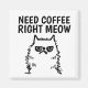 Need coffee right meow. Square fridge magnet. Cranky cat by artist S.G. Fun magnet!