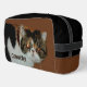 Let's put on your Happy Face, says this grumpy exotic short-hair Persian cat on this cute and funny toiletry bag. This photographic grouchy cat is sure to put a smile on everyone's face no matter what you chose to carry in it. This white black and brown Dopp Kit has Attitude, just like this cat's "Cattitude". All text is customisable and meant to be personalised with your feline lover's Name. This is original photography by JLW_PHOTOGRAPHY despite the cat's objection.