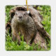 Groundhog in a Hollow Log Ceramic Ornament