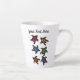 This Latte mug has a group of six abstract black turtles with pretty coloured shells in colours of red, yellow, blue, purple, green, and orange. Customise your text with the template.
