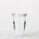 This acrylic drink tumbler with straw and lid has a group of Christmas carolers and musicians on a street corner under a lamp post with a bar of music notes at the top in a fancy black frame on the front and back. Customise your text with the template on the front and back.