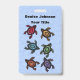 This name or identification badge is light blue with a group of six fantasy turtles that are black with colourful markings on their shells in blue, red, yellow, green, orange, and purple. Customise your name and information with the templates.