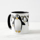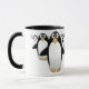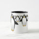 Group of Penguins on a coffee mug - black interior, with a black handle.