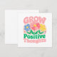 Nurture a brighter mindset with this uplifting "Grow Positive Thoughts" greeting card featuring whimsical, colourful flowers and motivational lettering. This cheerful artwork encourages mindfulness, self-love, and personal growth, making it a perfect gift or personal reminder to stay positive and spread good vibes. This floral-inspired design brings beauty and encouragement to everyday life.