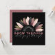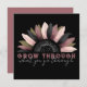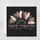 This design features a half sunflower image with the phrase "grow through what you go through" underneath. On the back of the card there is space for a custom greeting in a matching font. The text, font, and background colors may be customized, and the image may be adjusted for size and placement.