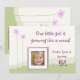 Pink flowers green grass and white background little girl 'growing like a weed" photo frame birthday party invitation.