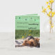 A fun and colorful photograph of a Yorkshire Terrier puppy playing with a stick adorns the front of this card. Green background with a retro design and text that reads: "Growing old is mandatory Growing up is optional". Inside customizable text reads: "Wishing you a Happy Birthday".