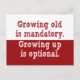 Your body might be over the hill, but your spirit is still young! A great birthday or retirement gift. Reads "Growing old is mandatory. Growing up is optional."