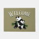 Panda mama sits eating bamboo while baby does as baby panda sees