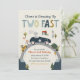 Your little one is growing up two fast! Invite friends and family to a fun 2nd birthday party with this fun vintage cars and animals illustration themed invitation.