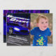 Start your engines and race to the finish line to celebrate your son's birthday. This unique invitation was digitally drawn to illustrate a very fast sports car on a night street racing contest with no one can catch up