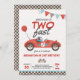 Growing Up Two Fast Red Race Car 2nd Birthday Invitation