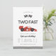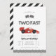 Rev your engines and get ready to celebrate with our 'Two Fast' race car birthday invitation! Featuring high-speed designs and customisable options, this invitation sets the pace for an action-packed party. Buckle up and join us as we race into another year of adventures with the birthday boy/girl at the wheel
